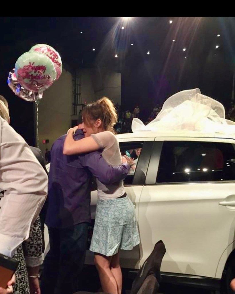 Suddenly I am on the stage shaking like a leaf, confused but then I find my voice. I tell a little bit of the struggles of raising a child alone. I encourage the other single mothers and I praise God for his faithfulness to me! The pastor turns to me and says “What is a biggest need in your life right now”? I immediately say, “A car”. He says, “A car, why don’t you bring that car in that door right there”