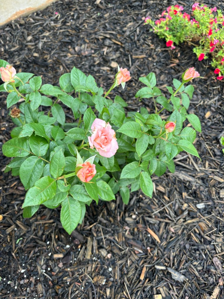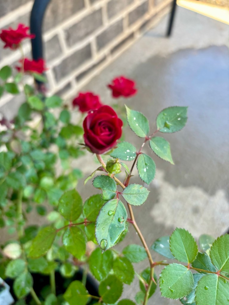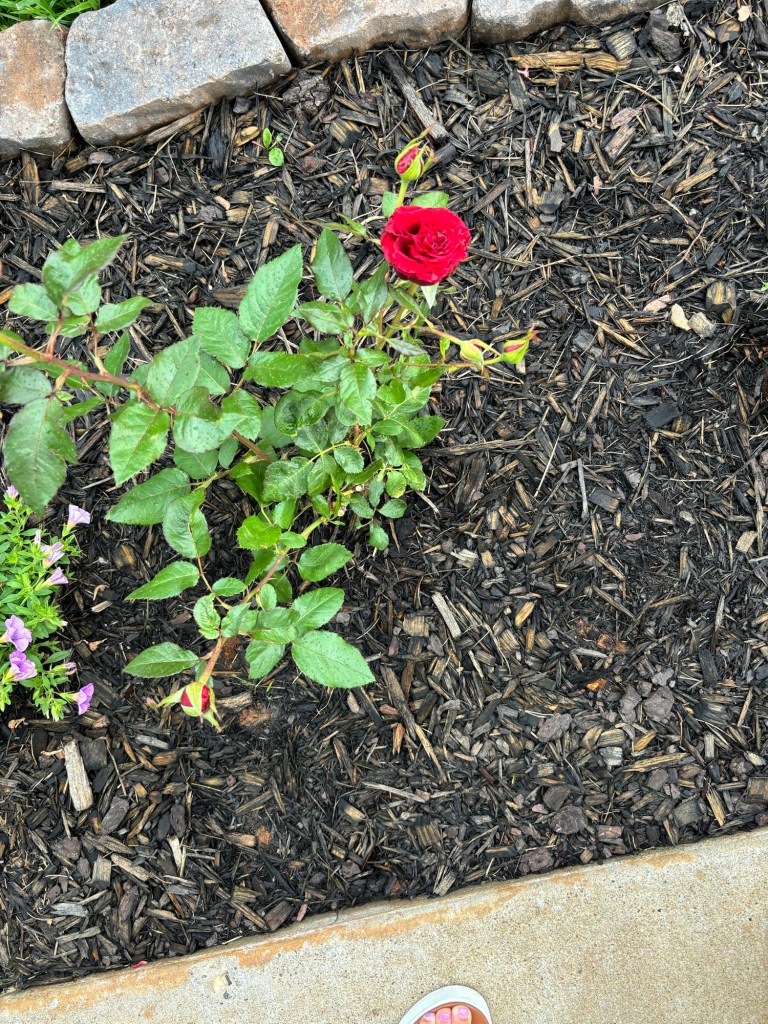 Finally, the roses began to grow leaves and then eventually blooms started to appear. I realized why people love gardening so much! It felt amazing to see the results of our work! Do not give up on the seeds that you have planted in your own life! We must keep tending to them, and waiting for our harvest. The work God started he will finish! We cannot always see the new growth, sometimes it’s happening deep beneath the soil of our hearts!