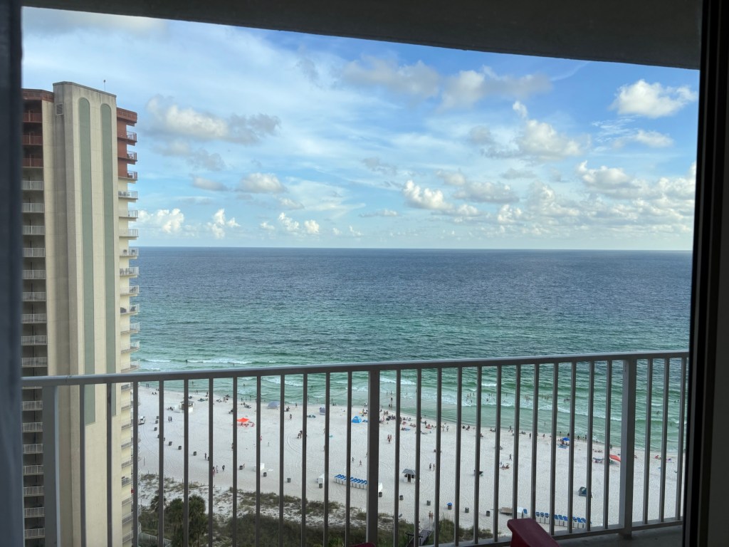 Last week we took a quick vacation to my favorite place, the beach. We stayed in this really nice condominium that was twenty-three stories! Our room was on the seventeenth floor, and the view was amazing. It made me a little dizzy the first time we went up to the room. I could see for miles on both sides, and on the other side, was the endless ocean. The ocean is always such a healing place for me, it makes me think of the vastness of God’s presence, and the way that he pieced this world together. How can I be so afraid, when my God is full of this kind of beauty and majesty? Forgive me Lord. I desire to trust you more.