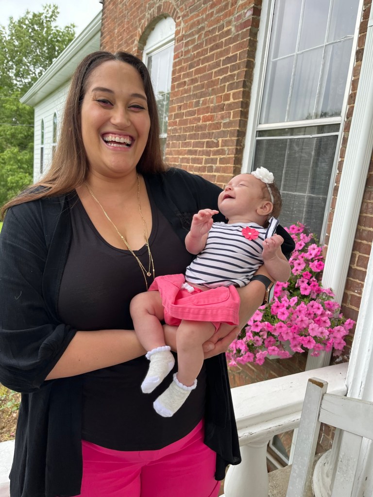 This photo was taken on Mother’s Day 2023, it was a happy day. My Aunt Debbie was making me laugh and I was full of joy with my new baby girl! She was one month old in this photo. My children are my joy!